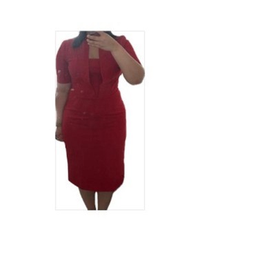 [This review was collected as part of a promotion.] I was gifted this dress in exchange for my honest thoughts. I genuinely love the design - it's fresh and work-appropriate. The shade of red is brighter than it appears online, but I prefer the way it looks in person. Keep this in mind if you're shopping online. While the material feels cheap (as expected at this price point), it's not unusual for this price range. I'd still wear it to work. The material has some stretch, but not a lot. There's a side zip for easy on and off. My only issue is the fit - it's too big in the chest, causing the lapels to puff out when I move. I think the correct size would fix the chest issue, but make the dress too tight elsewhere. At 5'0", the dress hits just below my knees (great for work), but the waist sits a bit lower than my natural waistline.
