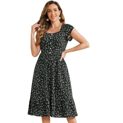 The V-neckline adds showcases your collarbone, creating a flattering look. The A-line silhouette skims over your curves, providing a comfortable and figure-flattering fit that suits various body shapes and sizes. With puff sleeves, this dress exudes a sense of whimsy and romance. The voluminous sleeves makes a bold fashion statement. Pair the dress with heels or handbag.