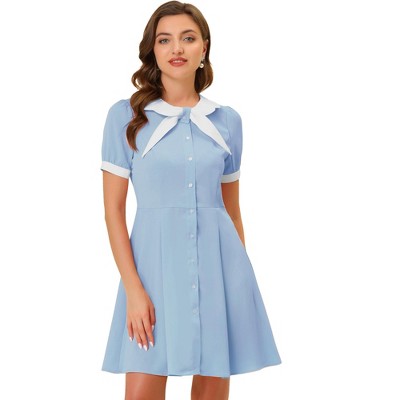Allegra K Women's Vintage Button Down Flat Collar Belted Office Mini Shirt Dress Small Royal Blue