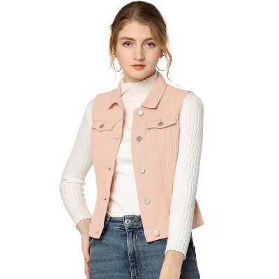 Allegra K Women's Vintage Button-Up Sleeveless Cropped Jean Waistcoat Vest Small Pink