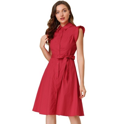 Allegra K Women's Vintage Cap Sleeve Belted Square Neck Sheath Dress - 1 of 4