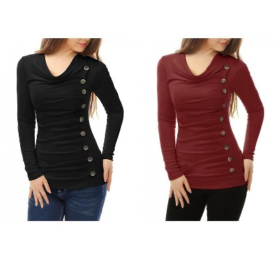 Allegra K Women's Vintage Peter Pan Collar Contrast Puff Short Sleeve Blouse 2 Packs Black/Burgundy X-Large
