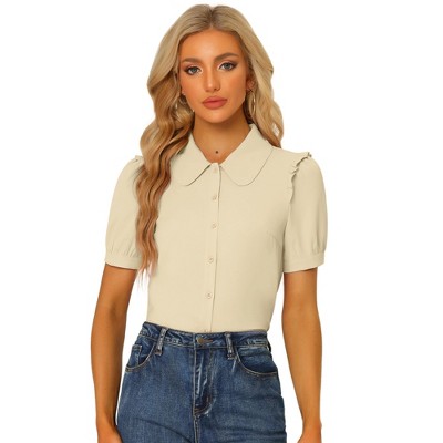 • This elegant top is designed with a cute Peter Pan collar and puff short-sleeved