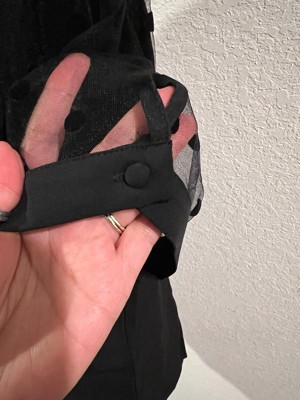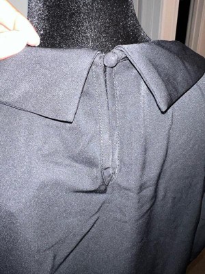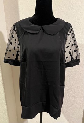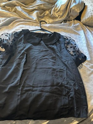 [This review was collected as part of a promotion.] My favorite thing about this blouse was the details! Loved the see through polka dot sleeves & the round collar! The fabric is soft, comfortable & feels durable. Fits true to size. I usually wear a large in women’s shirts & this blouse fits good, not too tight or loose. Love the color, who doesn’t love black?! It’s such a cute top & versatile to wear with a skirt, slacks or even jeans.