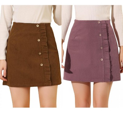 INSPIRE CHIC Women's Vintage Plaid Double Breasted A-Line Pleated Mini Skirt Brown Large