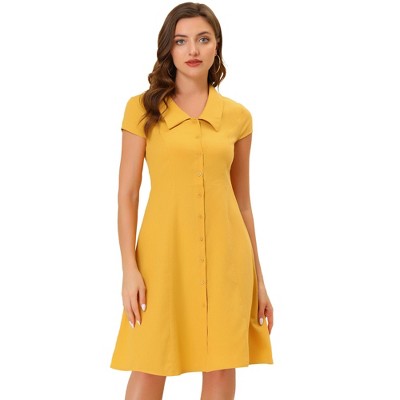 • A: This product is a vintage-style midi dress with a pleated front and short sleeves.