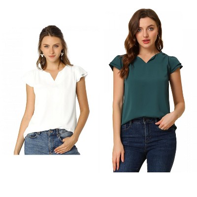 • Layered Cap Sleeve, V Neck, Basic Simple Blouse