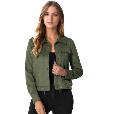 INSPIRE CHIC Women's Zip Up Faux Suede Biker Moto Jacket Small Olive Green