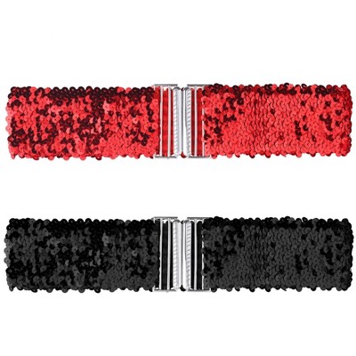Allegra K Women's Elastic Sequins Decor Metal Interlock Buckles Belts for Dresses 1 Pc 60cm/23.62" Red
