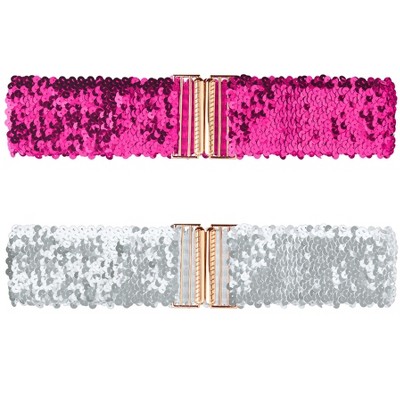 Allegra K Women's Elastic Sequins Decor Metal Interlock Buckles Belts for Dresses 1 Pc 60cm/23.62" Rose Red