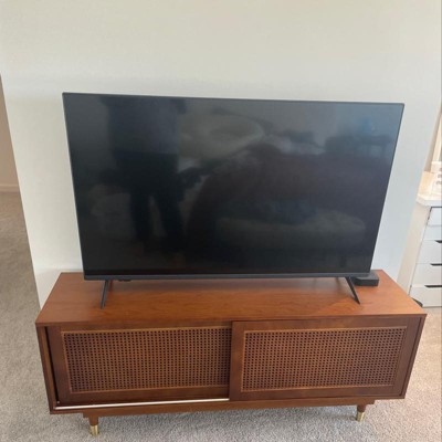 I’m a fan of this TV stand and fits perfectly our decor. Doors slide easy and the rattan doors are not solid which means you can put your electronics in there and keep the doors closed. I’ve got my DVD player, cable box, and our subwoofer in there. Very easy to install. Took me about 30 min.