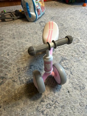 [This review was collected as part of a promotion.] Got this for my 1.5-year-old, and she loves it! Very stable with the 3 wheels, and the silent tires are perfect for indoor use. The adjustable seat is a nice bonus — she’ll be able to use it for a while. Cute color and easy to assemble too!