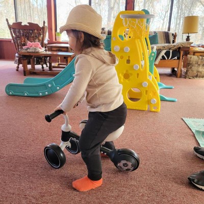 - Silent Wheels for Indoor & Outdoor Play - The no-pedal bike moves silently, which makes it perfect for indoor and outdoor play. It won't damage your floors and can run smoothly in gardens or other flat surfaces. However, we don't suggest riding it on slopes, streets, roads, bumps, muddy, or wet roads. As always, never leave your baby alone when they are playing.