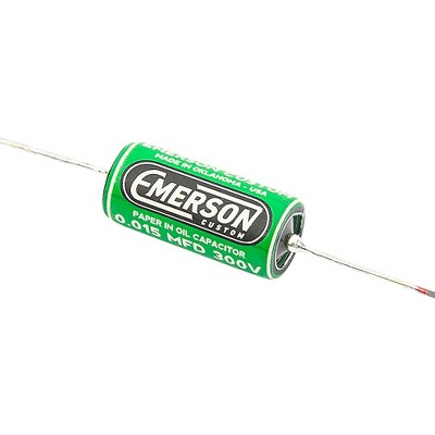 Allparts Emerson Custom Bumblebee paper-in-oil capacitors provide guitarists vintage tone and performance. Handcrafted in the U.S.A. with kraft paper and oil, these capacitors rival the quality of the famous Sprague Vitamin Q capacitors for shaping instrument's tone. With a capacitance of 0.22 microfarads, these non-polarized capacitors are optimized for use with humbucker pickups. Their sturdy 20 AWG copper-clad steel leads and hermetically sealed metal tubular cases with glass ends ensure durability and prevent interference. For discerning musicians seeking boutique components to craft a signature sound, the Emerson Custom Bumblebee paper-in-oil capacitors are ideal for upgrading instrument's electronics.