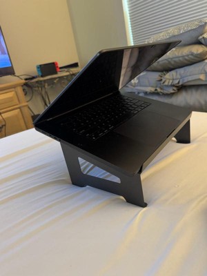 [This review was collected as part of a promotion.] This is a very sturdy firm stand. I use it for my laptop. What I love about it is that I can take it and use it anywhere in my home. I will even use it on my bed while watching TV. I have taken it to work and got many questions about it. I’m pleased with how it looks with all my laptops. I’ll update pictures. I highly recommend this versatile stand. The angle on the stand is perfect for my needs. I work very comfortably and can work a bit longer with less breaks.