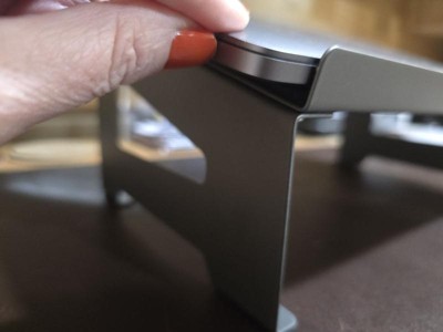 [This review was collected as part of a promotion.] The Allsop TechStyle steel laptop stand was given to me free to try for my honest opinion. It's very strong and sturdy, I could probably put quite a bit of weight on it without issue. It's a bit too tall for this desk, but if it was shorter, it would be a great thing to have. It's a bit too narrow to be handy as an on my lap, laptop holder, but works well next to me in bed. I like the felt padding that holds the laptop, there's a lip that is a bit taller than my laptop that my wrists land in occasionally, but it's helpful in keeping the laptop in place and a good reminder to lift the wrists. Putting it together was pretty easy, just needed to put the legs at an angle, under & towards the back lip and it popped into place and I was able to put the nuts on easily with the included wrench.