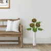 A lifelike artificial floral spray featuring a single sunflower bloom with brown and yellow petals, accompanied by realistic leaves. The bendable wire stem allows for easy shaping, making it perfect for arranging with other faux flowers or using alone as a charming accent. Ideal for those seeking natural-looking fake sunflowers to enhance any space with minimal care.