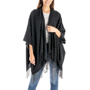 Oversized and cozy, this piece brings the casual feel of a classic knit wrap with a smart houndstooth patter you can easily dress up or down. Whether you're dressing up for a special occasion or keeping it casual for everyday wear, this houndstooth knit wrap is designed for versatility. Woven with soft lightweight fabric, this piece can become a staple for any outfit or occasion.