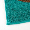 - Relaxing, outdoor vacation inspired bath rug featuring a canoe with paddles in multi-colors on a vibrant teal background