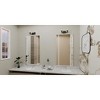 With a sleek matte black finish and gold accents, Almany bath lights make a modern statement over any vanity. The clear glass shades maximize radiance and showcase the bulbs of your choice, while aged brass accents add a touch of glam detail . This versatile vanity light can be mounted with the shades facing up or down, allowing you to easily customize to your desired bathroom setting.