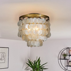 ALOADECOR 3-Light 13" Indoor Capiz Shell Flush Mount Coastal decor Ceiling Lights