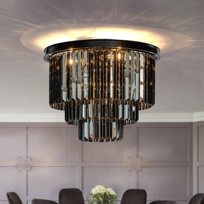 The tiered crystal flush mount is an elegant ceiling light with a contemporary look that will add mid-century modern decor style to your home. Its three tiers and six lights create plenty of warm, welcoming light. The sleek finish frame is strong and durable. The crystal hangs around the frame that forms a tapered shade, each crystal comes with a thick, triangular profile that delivers maximum refraction and reflection, enhancing its visual profoundness and artistry even further. And this light can be used as both a pendant and a flush mount, making it perfect for any room in your home. This chandelier is ideal for your foyer, living room, dining room, bedroom, hallway, or studio, both residential and commercial spaces.