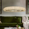 ALOADECOR Modern Silver Round LED Intergrated Crystal Chandelier Dimmable Glam Hanging Light For Dining Room