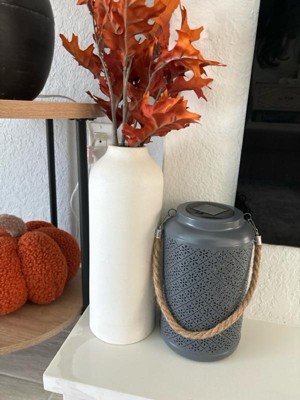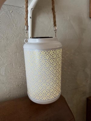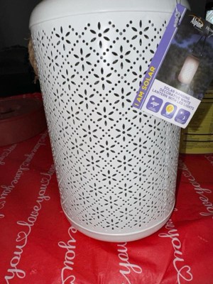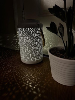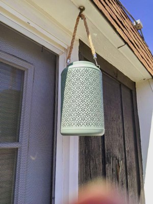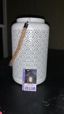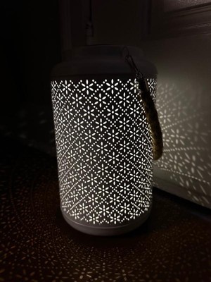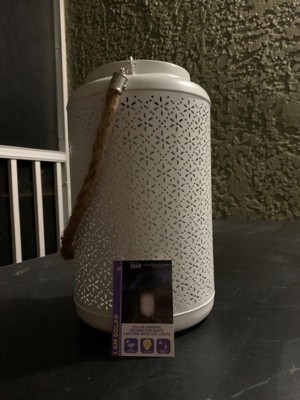 [This review was collected as part of a promotion.] This lantern is so cute and a great addition to my front walkway area. It’s a bit larger than I expected (which is great) and the punch pattern is so pretty! Not super bright, but does give a nice cozy amount of decorative light. I’ll be interested to see how long the battery lasts. The color is a bit more grey than blue, but it still works with my outdoor palette. We have it hanging by the front steps right now but may put it on our porch at some point. Seems like it works nicely in both spots. Can’t wait for summer nights!