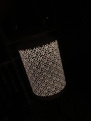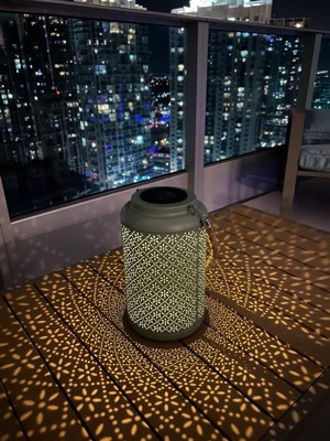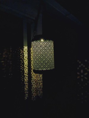 [This review was collected as part of a promotion.] I absolutely adore this solar hanging lantern with LED lights for my balcony. It has the open cuts that allows light to come through and make a print on the walls and ground. I can’t wait to see it lit but I tried it indoors and it looks great!