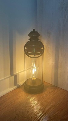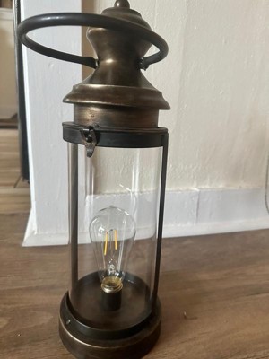 Alpine Corporation 17" Battery Gold Metal and Glass LED Indoor Outdoor Decorative Lantern Off-White: Elegant Illumination, 1 Year Warranty