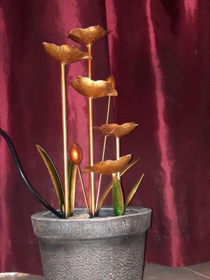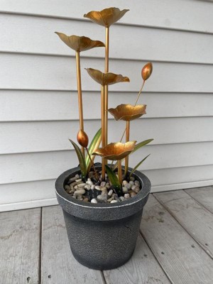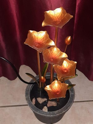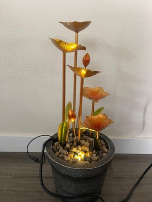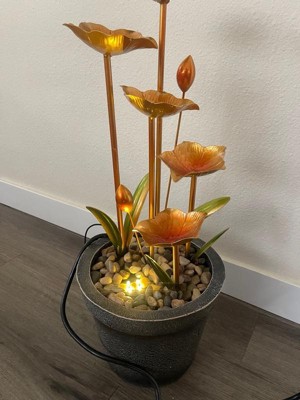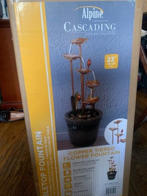 Alpine Corporation 23" Copper Tiered Flower Tabletop Fountain: Polyresin, LED, Outdoor Use, 2-Year Warranty