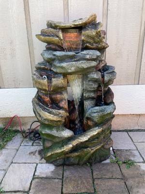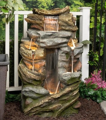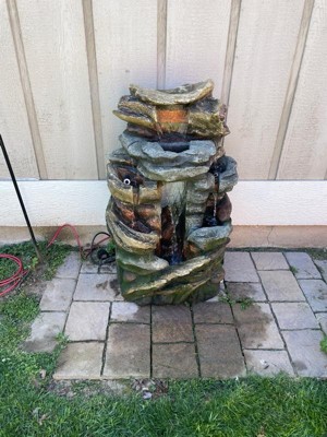 Alpine Corporation 41" Cascading Rock Mountain Water Fountain: Polyresin, Outdoor Use, 6 Basins