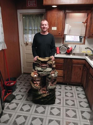 [This review was collected as part of a promotion.] This outdoor water fountain is definitely bigger than I anticipated. It’s quite a unique piece for the outdoor entrance of your home. A piece was however chipped on the top , but I guess that was from during shipping because the box it came in was huge and took allot of work to bring in and it was messy to open up and definitely needed man power to lift this fountain.