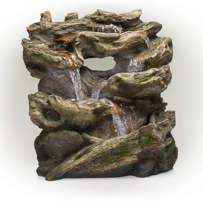 Create a serene and enchanting atmosphere in your outdoor space with the Alpine Corporation Cascading Stone Water Fountain featuring LED lights. Measuring 26"L x 24"W x 53"H, the cascading stone design adds a touch of natural beauty and elegance to your surroundings. The integrated LED lights enhance the visual appeal, casting a soft glow on the flowing water for a mesmerizing effect during both day and night. Made from resilient polyresin, this fountain withstands the elements while maintaining its aesthetic charm. Elevate your outdoor space with the soothing sounds of cascading water and the subtle illumination provided by the LED lights, creating a tranquil retreat in your own backyard. With Alpine's 1-year warranty, you can Shop With Assurance and Buy With Confidence.