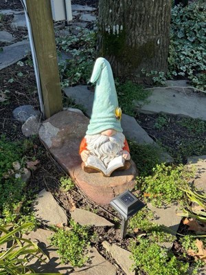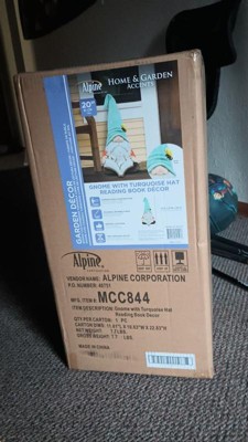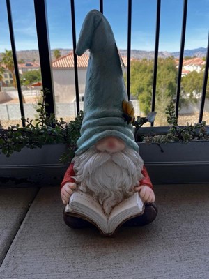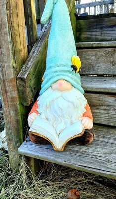 Alpine Corporation Gnome With Turquoise Hat Reading Book Décor: Ceramic Statue, Mythical Charm, Indoor/Outdoor Use