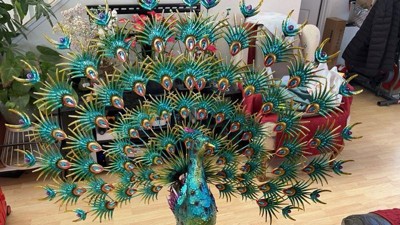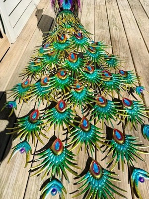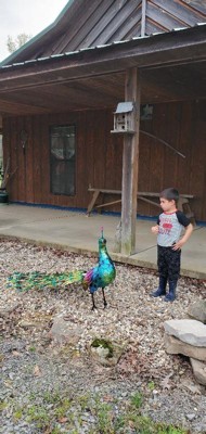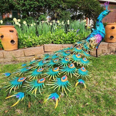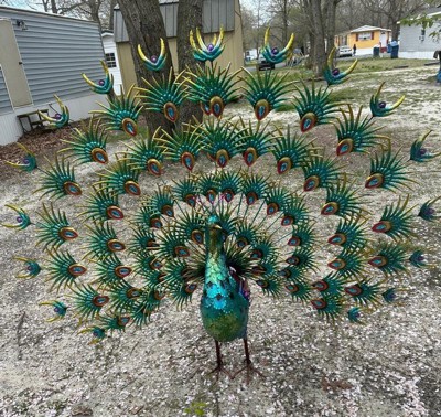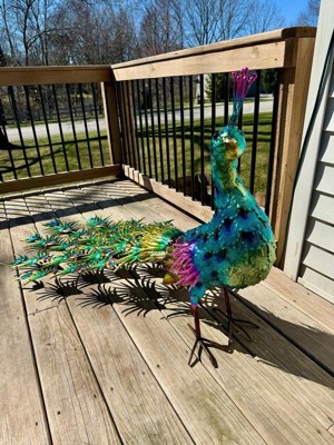[This review was collected as part of a promotion.] A simply beautiful yard/porch decor product. I love the vibrant colors and featured gemstones and the way they catch the light , adds a touch of elegance to any set up. The peacock is rather large , which I expected from the measurements but it was pretty surprising to see it all in person! He’s beautiful. I’ve named him Salvatore.
