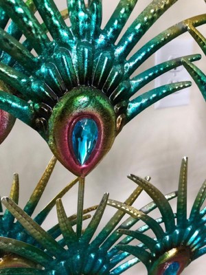 Alpine Corporation Jumbo Size Majestic Tail Open Peacock Décor: Iron Bird Sculpture with Jewels, Outdoor Use