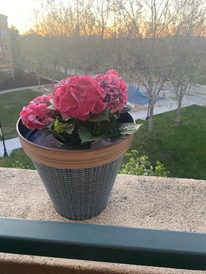 [This review was collected as part of a promotion.] The gray tan woven style planter with the drainage. Whole large is amazing. It’s pretty big so I can put in my favorite flowers for the year so I can’t wait to use this summer
