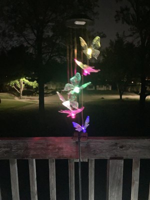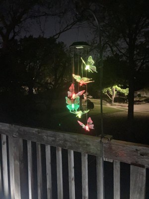 - OUTDOOR GARDEN DÉCOR: Hanging wind chime features 6 color-changing LED butterflies powered by solar energy, and provides a unique and colorful addition to your home's exterior décor