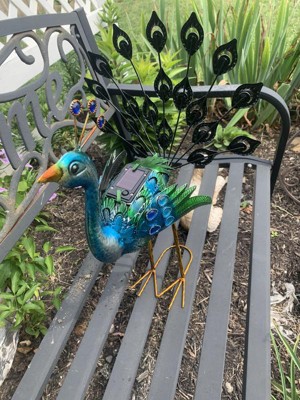 Alpine Corporation LED Solar Garden Peacock: Iron Sculpture, Outdoor Decor, 20" Height