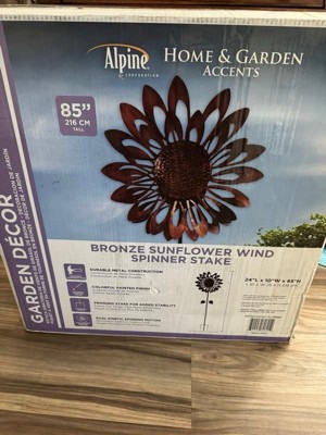 - 1-Year Warranty for Customer Assurance: Backed by a warranty, the Bronze Sunflower Wind Spinner Stake provides customers with assurance of its quality and craftsmanship. This warranty reflects the manufacturer's commitment to customer satisfaction, ensuring confidence in the durability and visual appeal of their iron-crafted garden decor. With Alpine's 1-year warranty, you can Shop With Assurance and Buy With Confide