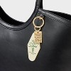 Add a touch of wanderlust to your handbag with this Alpine Hotel Key Bag Charm from Universal Thread™. This bag accessory features a vintage hotel tag in black and gold that reads "Alpine Hotel Top of the World Est. 1962" plus a gold-tone key with a heart-shaped top, both hanging from a gold-tone keychain ring. Designed with a lobster claw clasp closure, it's easy to attach to any of your favorite bags.