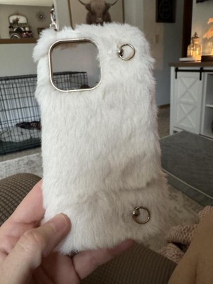 This is such a cute phone case! It is super soft and fits on my phone well. The fur on the back is super soft and thick and very nice to hold, but because the fur is so thick it does make my phone quite a bit wider. And the two rings on the back are nice to put a strap on and have like a cross body.