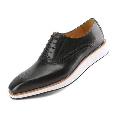 [This review was collected as part of a promotion.] These look like your average pair of black men’s shoes, but there’s so much more. Let’s start with the fit the shoe hugs your foot with a soft surrounding and gentle padding so if you’re planning on standing up the entire day, this will help. There is a no skid bottom which is great for rainy days or even wearing in the snow. I like the black color and the crinkle design of the leather. This is a size 10, which fits perfect perfectly with socks. This item Felt true to size and the width Felt too wide. I received an incentive to write this review.