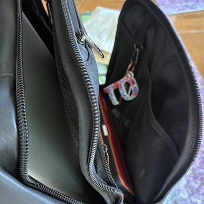• LAPTOP POCKET - Features 4 zippered compartments total. Main compartment has apadded slip pocket measuring 9.25" W x 9.75" Lthat fits13" inch laptops or smaller. Main compartment also has a small slip pocket and large zippered mesh pocket and to easily see and find your belongings.
