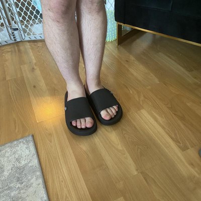 [This review was collected as part of a promotion.] These have the look of pricey slides and are quite comfortable as well. This is a size 10 and the fit is true to size. Easy to slip on and off, they are not heavy but feel substantial to wear. Great for house shoes or pool or beach wear for summer. Black color goes with everything and is also popular for the style of shoe. The tread on the bottom makes them not slippery too. This item Felt true to size and the width Felt true to width. I received an incentive to write this review.