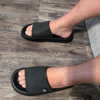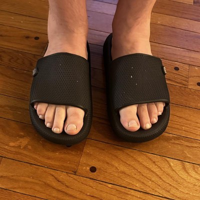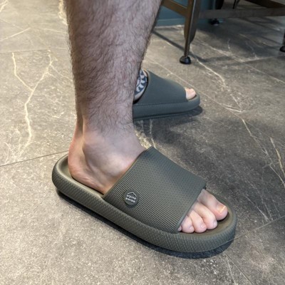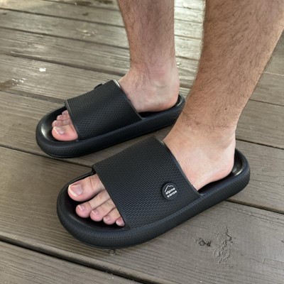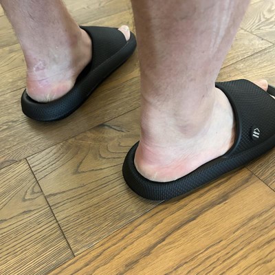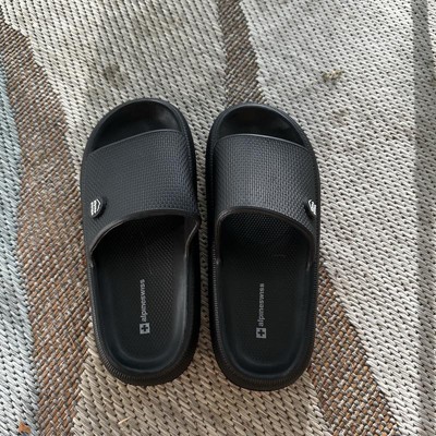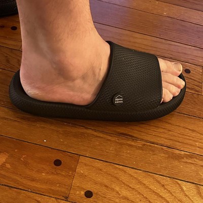 Omar Cloud Slide Sandals By Alpine Swiss Product Features: 100% EVA Foam Stylish & Trendy: Alpine Swiss Omar mens sandals feature a trendy design that pairs effortlessly with any casual outfit. Designed for all-day comfort, these pillow slippers will make you feel like you’re walking on a cloud!  Cloud Cushioned Comfort: The Omar cloud slides for men are built with a 1.62 inch thick sole to provide the ultimate cloud walking experience. The ergonomic deep cupped footbed provides a soft cushioned feel and acts like a bumper to keep your feet protected and comfortable.  Lightweight & Waterproof: Our slide sandals for men are made from flexible and supportive EVA foam material that is super lightweight and waterproof. Versatile slides are perfect for summer activities, beach, pool, gym, shower, running errands, lounging at home, or after a hard workout so your feet can recover.   Effortless Everyday Wear: The Omar mens slides have textured outsoles to prevent slipping. The easy slip on entry and open toe design will keep your feet feeling fresh all day. Designed for medium width feet.  Easy Care: The EVA material is durable and easy to wipe clean. Avoid prolonged sun exposure so your sandals maintain their shape. These stylish sandals make a great gift for yourself or a loved one! MSRP $45.00