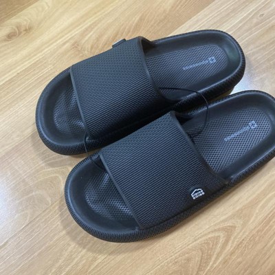 [This review was collected as part of a promotion.] These have the look of pricey slides and are quite comfortable as well. This is a size 10 and the fit is true to size. Easy to slip on and off, they are not heavy but feel substantial to wear. Great for house shoes or pool or beach wear for summer. Black color goes with everything and is also popular for the style of shoe. The tread on the bottom makes them not slippery too. This item Felt true to size and the width Felt true to width. I received an incentive to write this review.