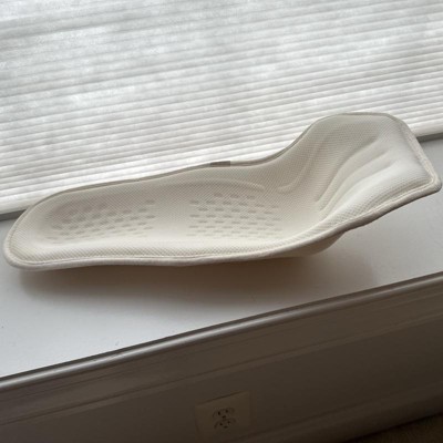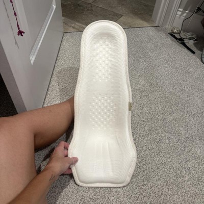[This review was collected as part of a promotion.] This feeding seat is interesting! My 4.5 month old is too big for it but I can see how it would be useful for a baby that hasn’t mastered head control yet. It does take pressure off your arm and I can see using this for a newborn with a delicate neck. I wish the design didn’t look so much like a maxi pad. The color, the designs/indents and everything about it look like a maxi pad. I think it would be better with a fabric cover or a darker color. I received an incentive to write this review.