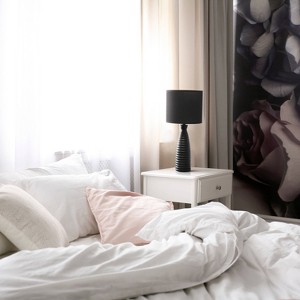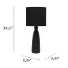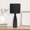 A repeating ripple pattern is the key element to this beautifully designed 20.25" table lamp. A black painted ceramic base is paired with a black matching fabric shade to easily incorporate this lamp to your space. This versatile lamp is ideal for the nightstand in your bedroom, your office desk, and even your entryway table!